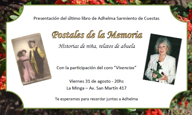 El viernes 31 de agosto los hijos y nietos de Adhelma Cuestas presentan “Postales de la Memoria -Historias de niña, relatos de abuela”, su último libro. (Ver más.)