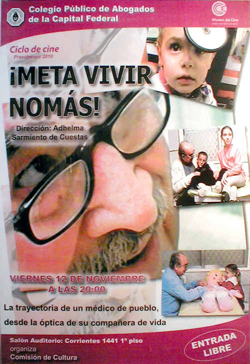 En 2005, ya con setenta años, inicio la tecnicatura en Producción de Cine y Video de la Universidad Nacional del Litoral, graduándome tres años después. Mi film de tesis, ¡Meta Vivir Nomás!, sella mi modesto aporte como cineasta, que se completa con otras siete realizaciones.